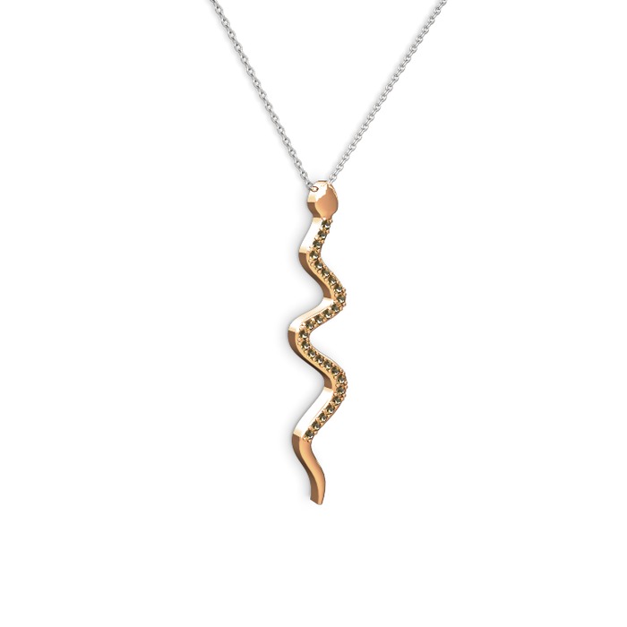 Dumanlı kuvars 14 ayar rose altın kolye (40 cm gümüş rolo zincir)
