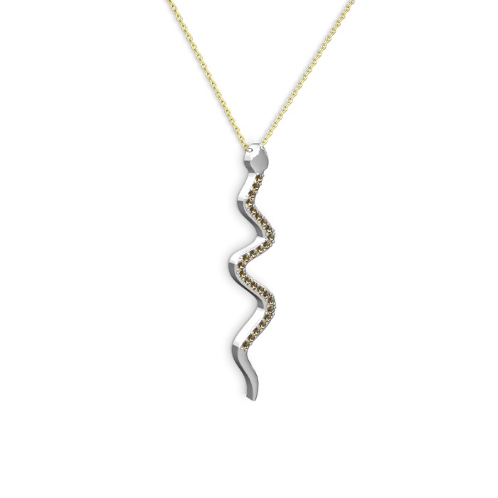 Dumanlı kuvars 18 ayar beyaz altın kolye (40 cm altın rolo zincir)