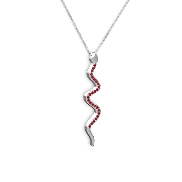 Garnet 8 ayar beyaz altın kolye (40 cm beyaz altın rolo zincir)