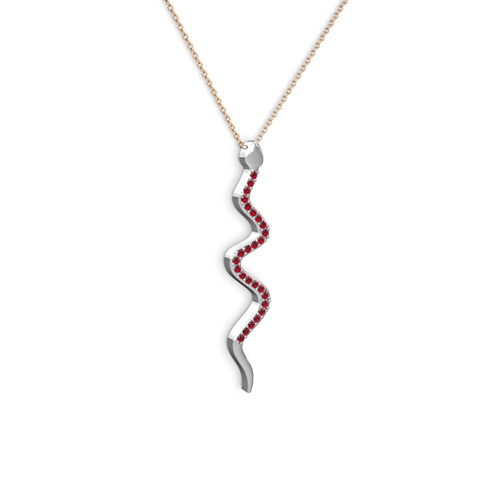 Garnet 8 ayar beyaz altın kolye (40 cm gümüş rolo zincir)