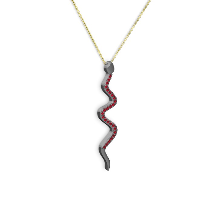 Garnet 925 ayar siyah rodyum kaplama gümüş kolye (40 cm altın rolo zincir)