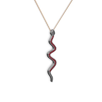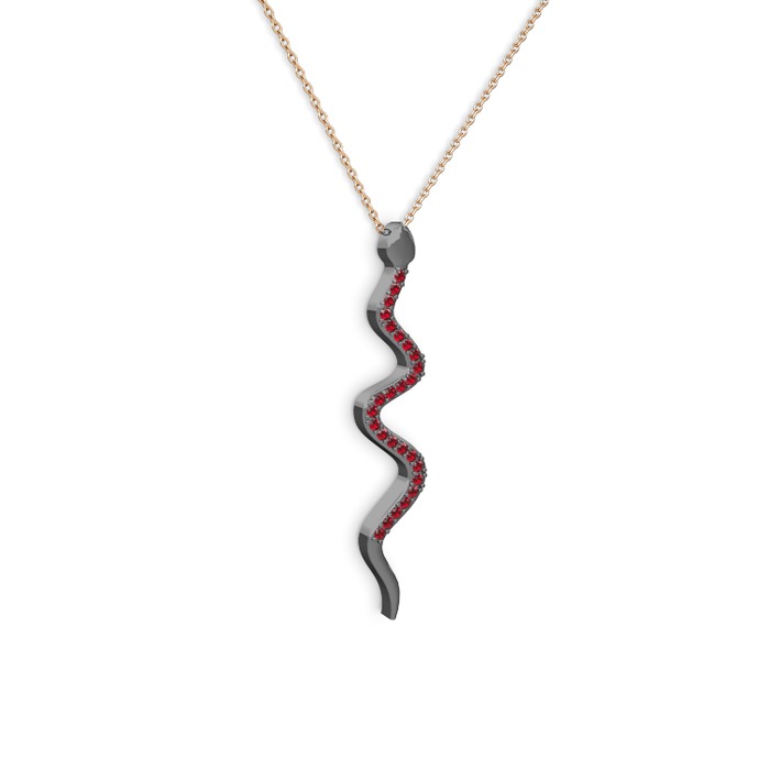 Garnet 925 ayar siyah rodyum kaplama gümüş kolye (40 cm rose altın rolo zincir)
