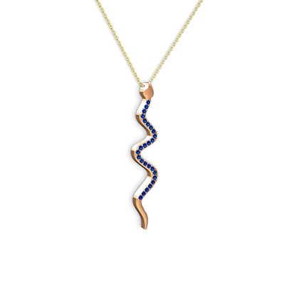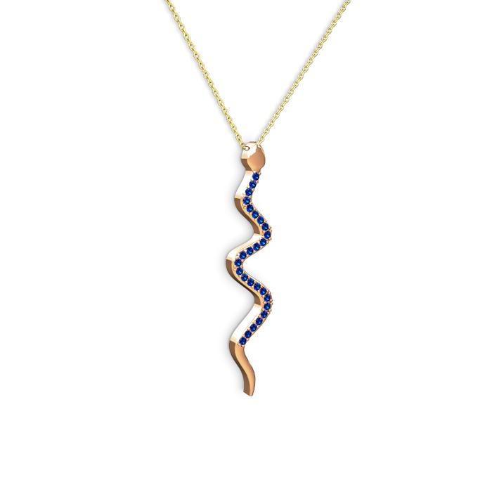 Lab safir 14 ayar rose altın kolye (40 cm altın rolo zincir)