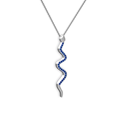 Lab safir 8 ayar beyaz altın kolye (40 cm gümüş rolo zincir)