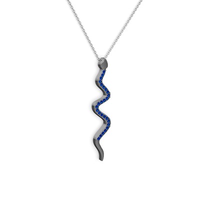 Lab safir 925 ayar siyah rodyum kaplama gümüş kolye (40 cm beyaz altın rolo zincir)