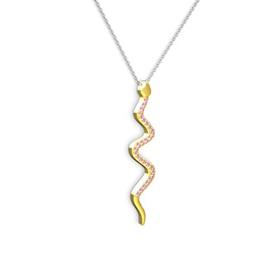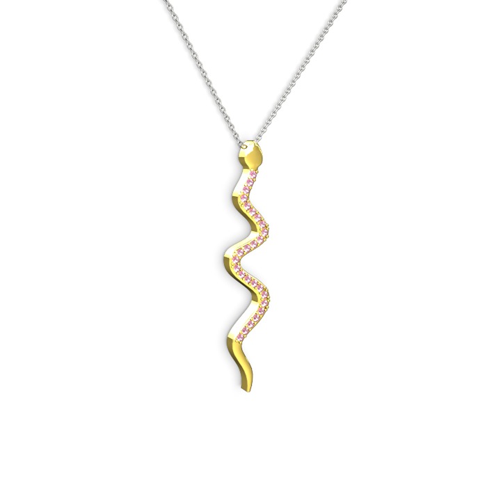 Pembe kuvars 18 ayar altın kolye (40 cm beyaz altın rolo zincir)