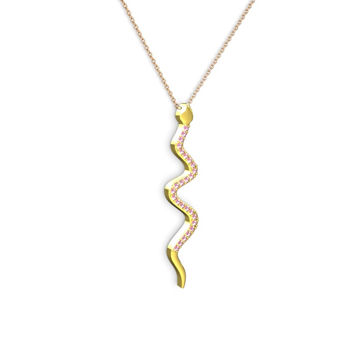 Pembe kuvars 18 ayar altın kolye (40 cm rose altın rolo zincir)