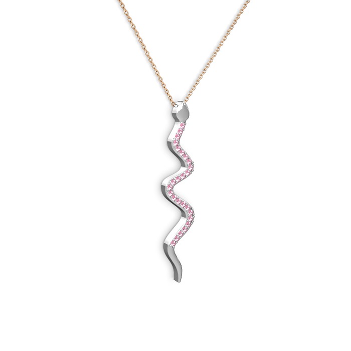 Pembe kuvars 925 ayar gümüş kolye (40 cm rose altın rolo zincir)