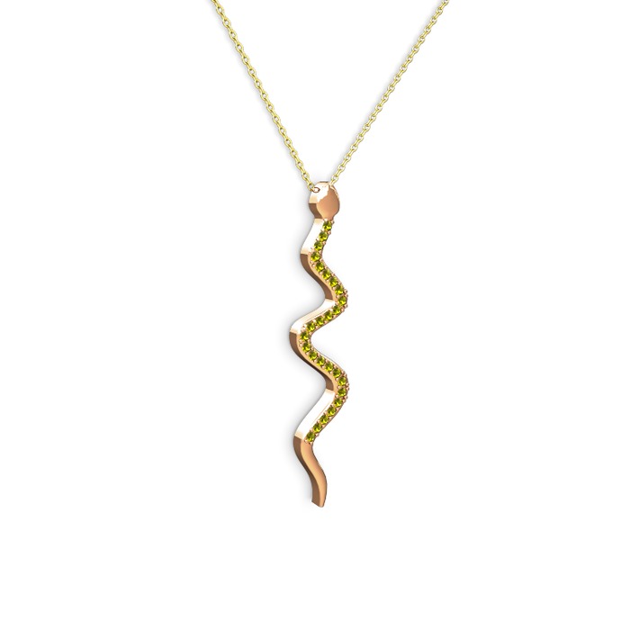 Peridot 14 ayar rose altın kolye (40 cm gümüş rolo zincir)