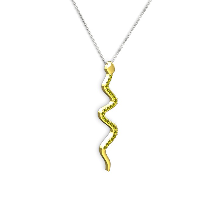 Peridot 18 ayar altın kolye (40 cm beyaz altın rolo zincir)