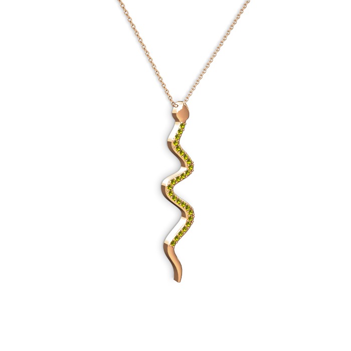 Peridot 8 ayar rose altın kolye (40 cm rose altın rolo zincir)