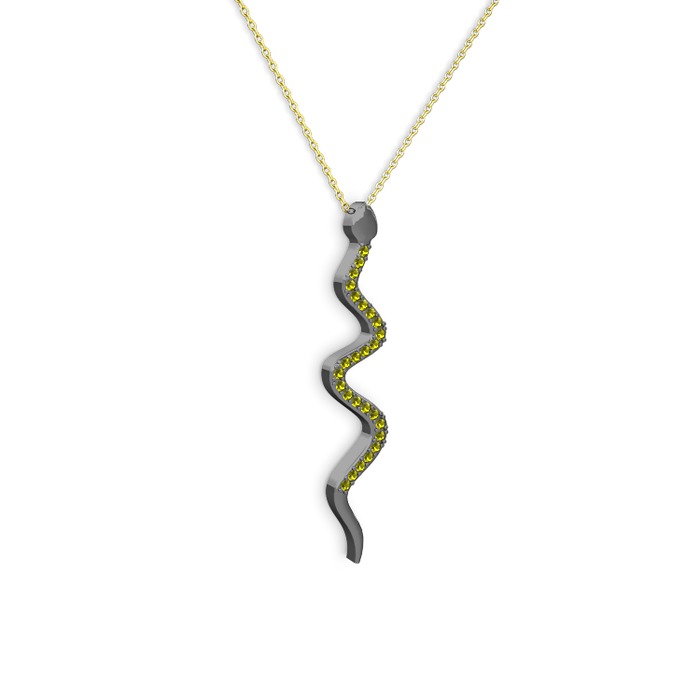 Peridot 925 ayar siyah rodyum kaplama gümüş kolye (40 cm altın rolo zincir)