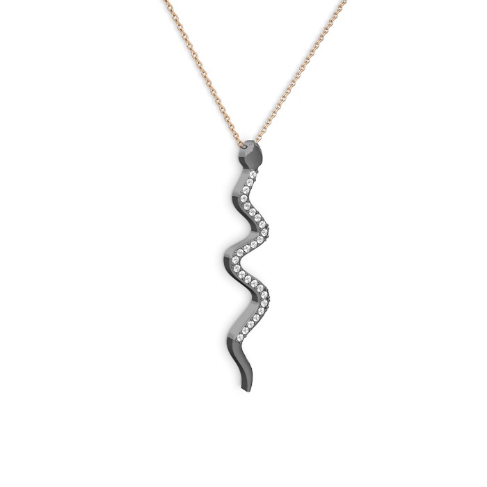 Pırlanta 925 ayar siyah rodyum kaplama gümüş kolye (0.286 karat, 40 cm rose altın rolo zincir)
