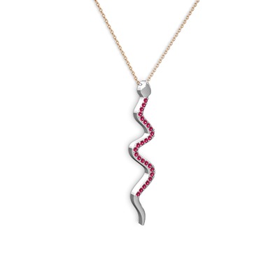 Rodolit garnet 14 ayar beyaz altın kolye (40 cm gümüş rolo zincir)