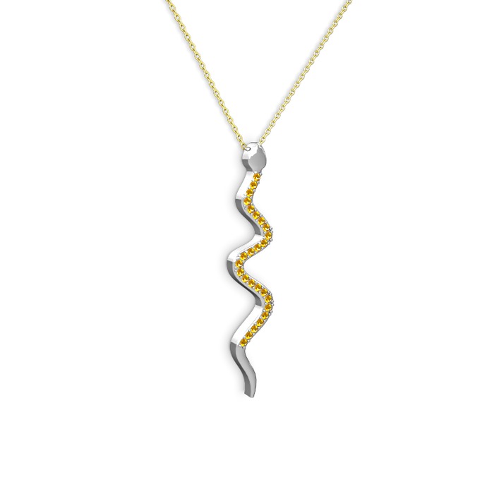 Sitrin 8 ayar beyaz altın kolye (40 cm gümüş rolo zincir)
