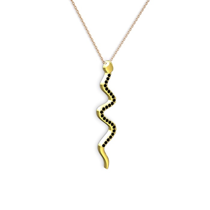 Siyah zirkon 14 ayar altın kolye (40 cm rose altın rolo zincir)