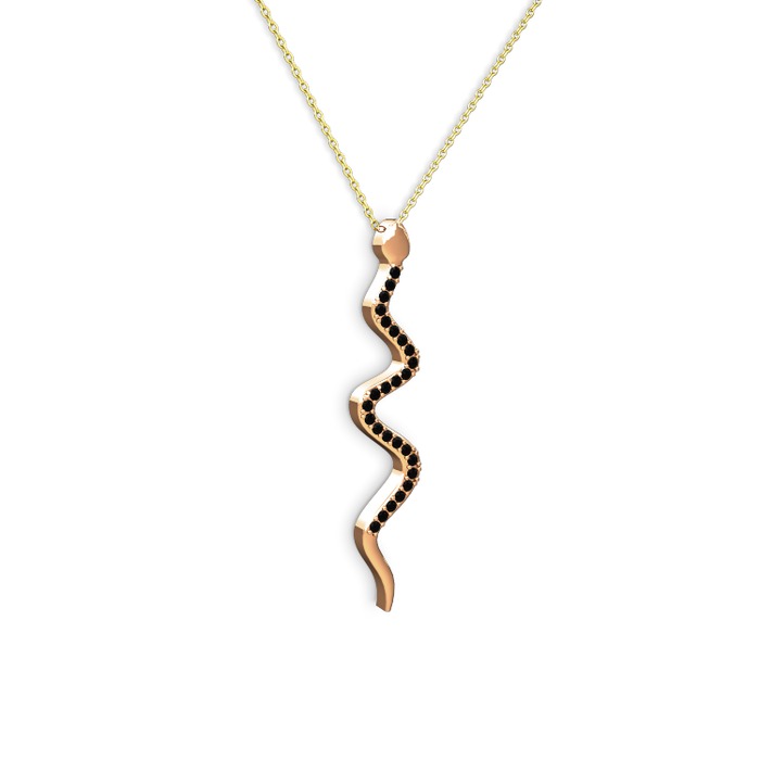 Siyah zirkon 18 ayar rose altın kolye (40 cm gümüş rolo zincir)