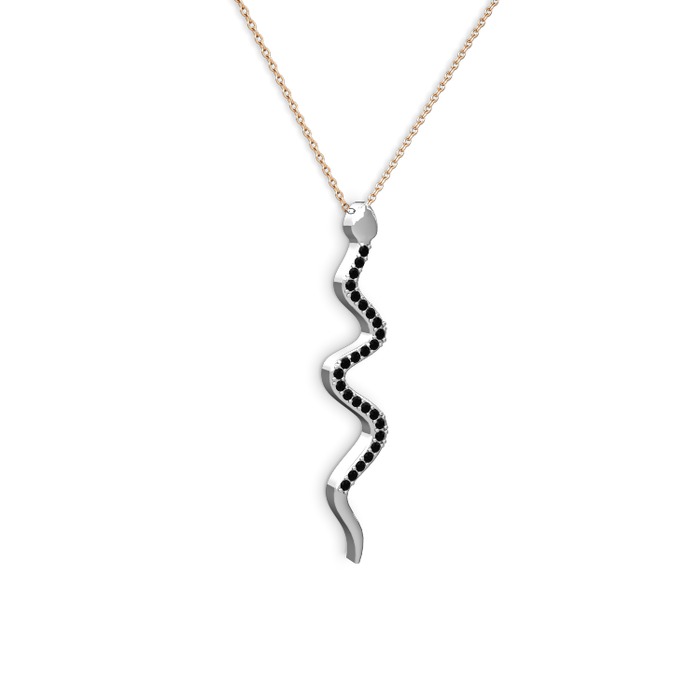 Siyah zirkon 8 ayar beyaz altın kolye (40 cm rose altın rolo zincir)