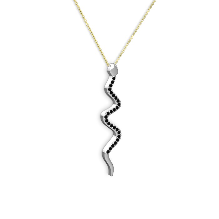 Siyah zirkon 925 ayar gümüş kolye (40 cm altın rolo zincir)