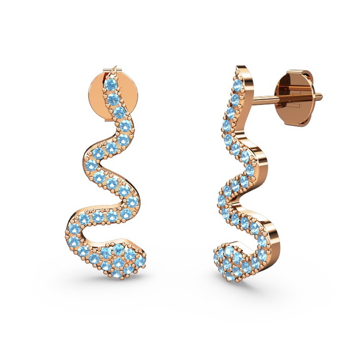 Akuamarin 925 ayar rose altın kaplama gümüş küpe