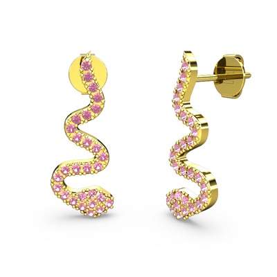 Pembe kuvars 18 ayar altın küpe