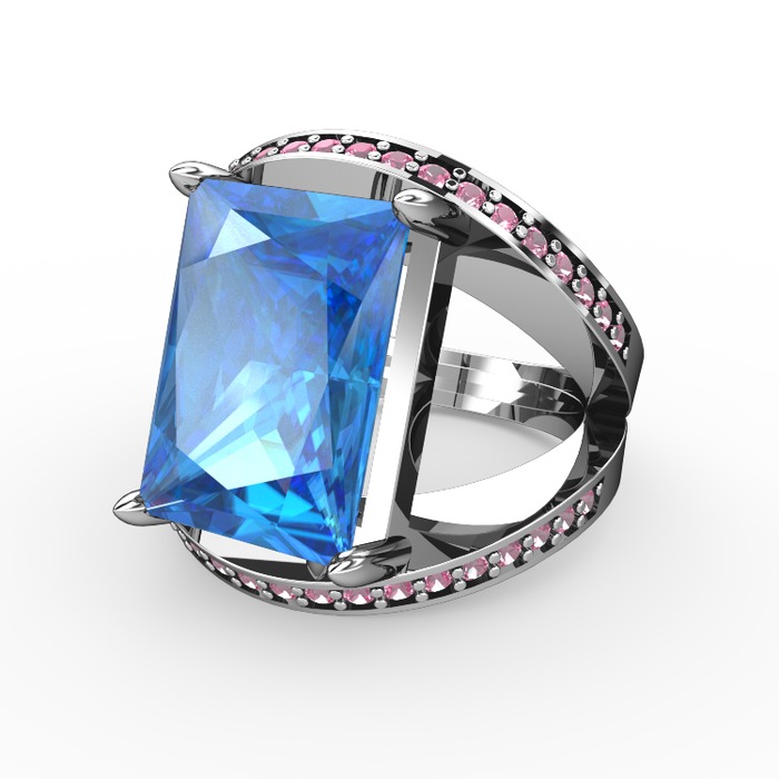 Akuamarin ve pembe kuvars 18 ayar beyaz altın yüzük