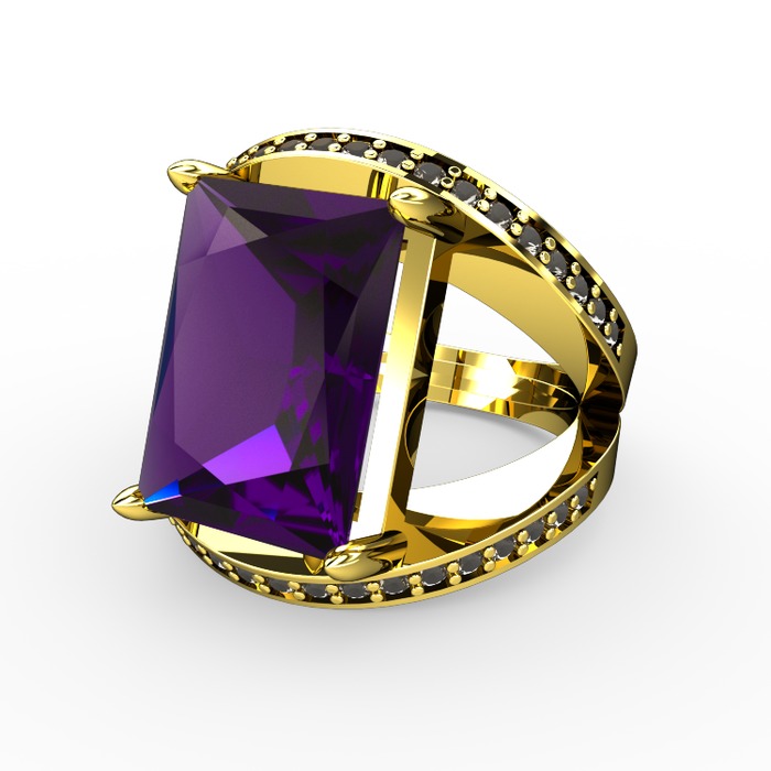 Ametist ve dumanlı kuvars 14 ayar altın yüzük