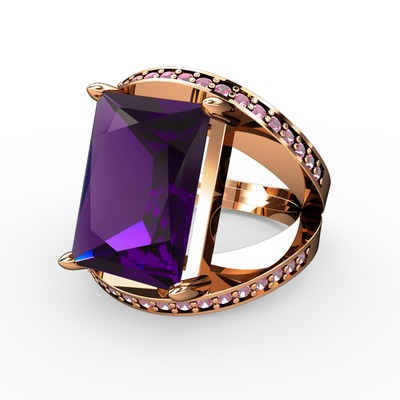 Ametist ve pembe kuvars 18 ayar rose altın yüzük