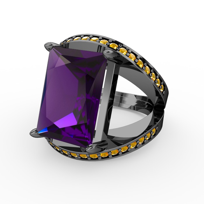Ametist ve sitrin 925 ayar siyah rodyum kaplama gümüş yüzük