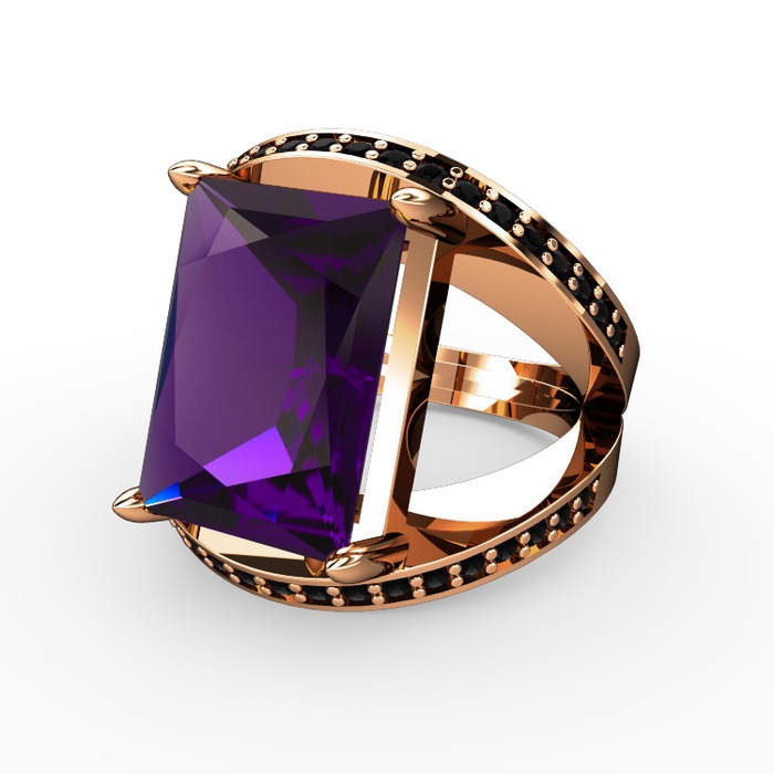 Ametist ve siyah zirkon 8 ayar rose altın yüzük