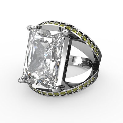 Beyaz zirkon ve peridot 925 ayar gümüş yüzük