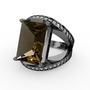 Dumanlı kuvars ve beyaz zirkon 925 ayar siyah rodyum kaplama gümüş yüzük