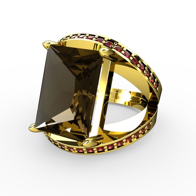 Dumanlı kuvars ve garnet 925 ayar altın kaplama gümüş yüzük