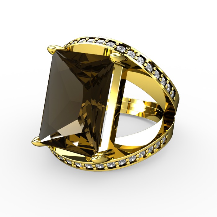Dumanlı kuvars ve pırlanta 8 ayar altın yüzük (0.6 karat)