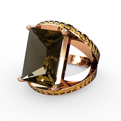 Dumanlı kuvars ve sitrin 14 ayar rose altın yüzük