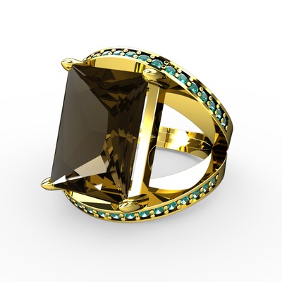 Dumanlı kuvars ve yeşil kuvars 18 ayar altın yüzük