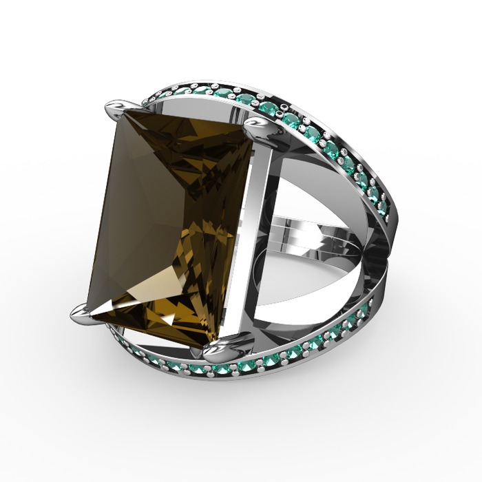 Dumanlı kuvars ve yeşil kuvars 8 ayar beyaz altın yüzük