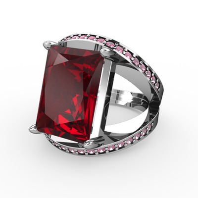 Garnet ve pembe kuvars 925 ayar gümüş yüzük