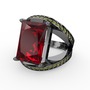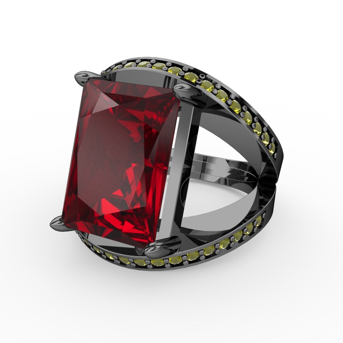 Garnet ve peridot 925 ayar siyah rodyum kaplama gümüş yüzük