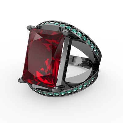 Garnet ve yeşil kuvars 925 ayar siyah rodyum kaplama gümüş yüzük