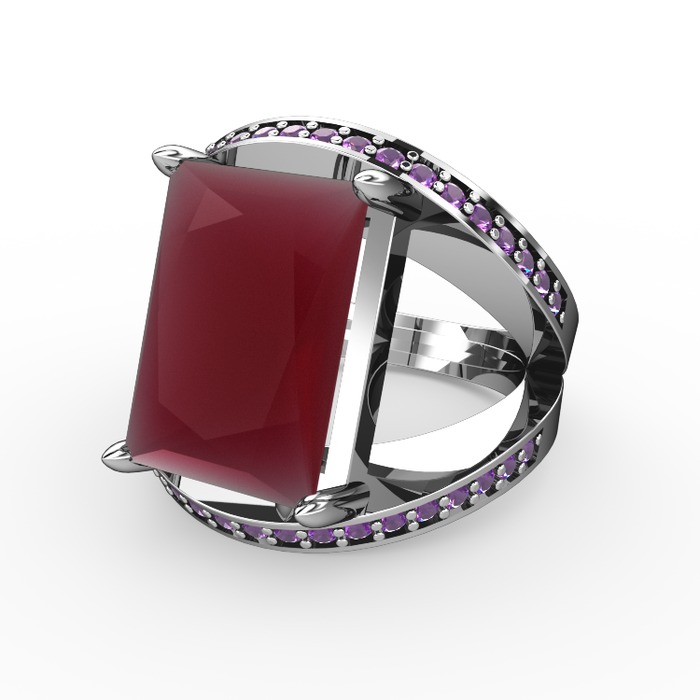 Kök yakut ve ametist 8 ayar beyaz altın yüzük