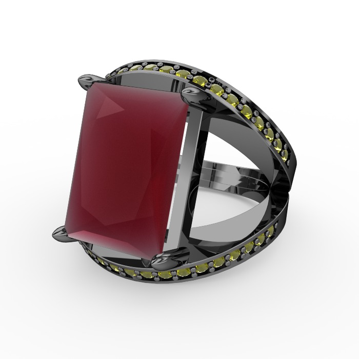 Kök yakut ve peridot 925 ayar siyah rodyum kaplama gümüş yüzük