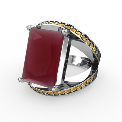 Kök yakut ve sitrin 925 ayar gümüş yüzük