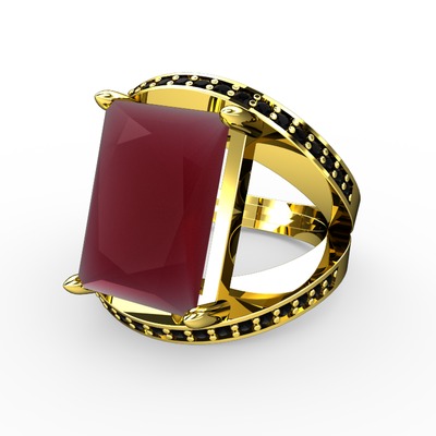 Kök yakut ve siyah zirkon 18 ayar altın yüzük