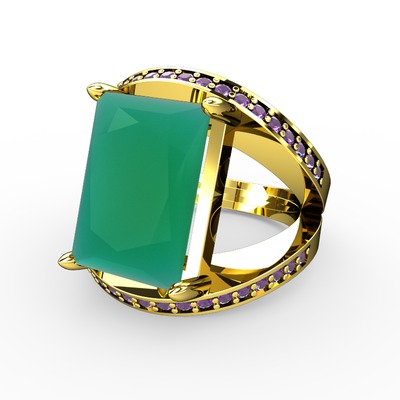Kök zümrüt ve ametist 18 ayar altın yüzük