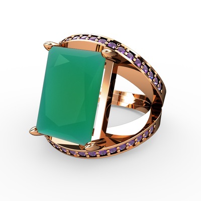 Kök zümrüt ve ametist 8 ayar rose altın yüzük