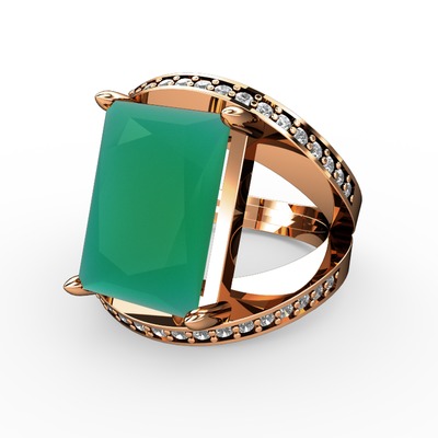 Kök zümrüt ve beyaz zirkon 14 ayar rose altın yüzük