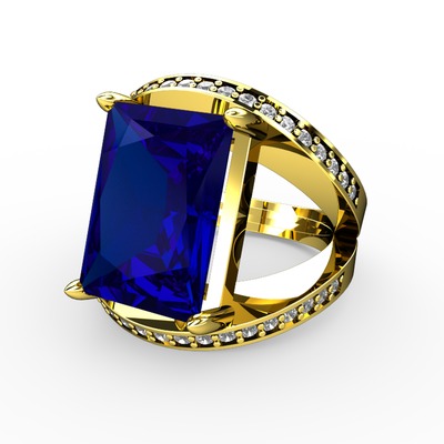 Lab safir ve beyaz zirkon 925 ayar altın kaplama gümüş yüzük