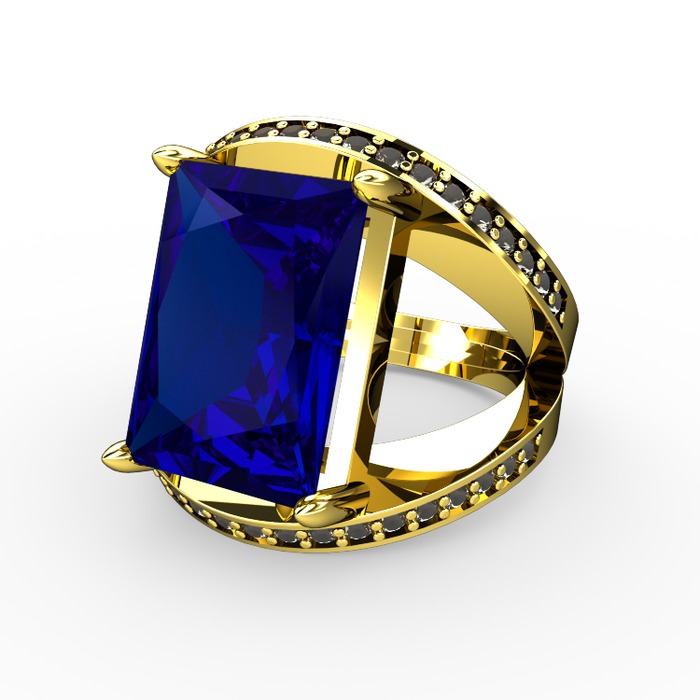 Lab safir ve dumanlı kuvars 8 ayar altın yüzük