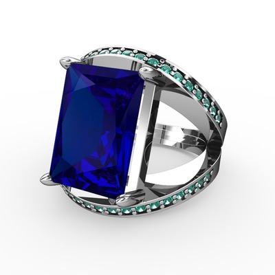 Lab safir ve yeşil kuvars 14 ayar beyaz altın yüzük
